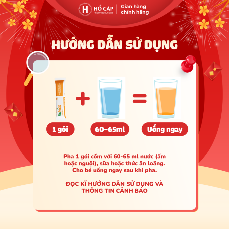 *Cách dùng: Một gói pha với 60 – 65ml nước hoặc nhiều hơn, có thể uống bổ sung thêm nước lọc ngay sau khi sử dụng sản phẩm. Có thể uống trước hoặc sau bữa ăn.